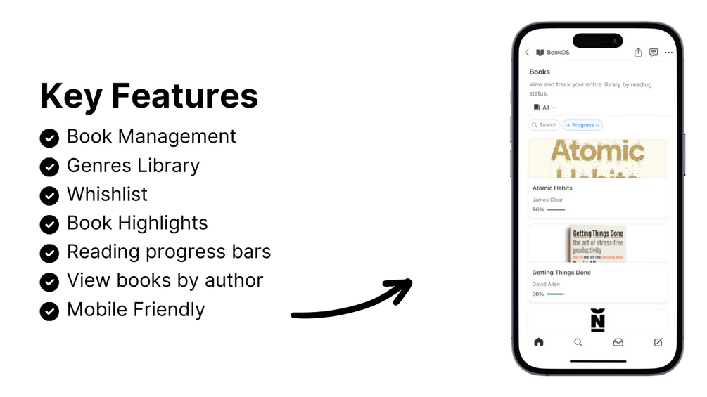 BookOS is designed to help readers simplify their book management, making it easier to stay on top of progress, capture important details, and reach your reading goals.